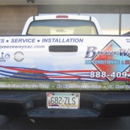 This is a design and truck wrap install for Breezeways Air Conditioning and Heating. Their logo was remade into a vector for use in all their future sign and product needs. This truck wrap is one of a small fleet of trucks and vans they have. Here is the design we came up with and a similar design rescaled for use on another truck and van. We came up with this outstanding design using our in-house graphic design services and printed upon customer’s approval of the design. If you’d like to check out our Breezeways Van Wrap check it...